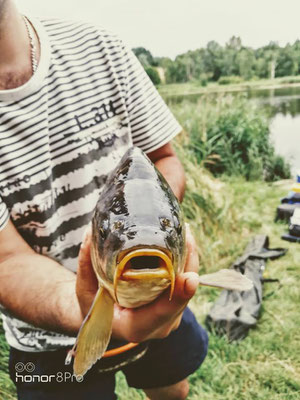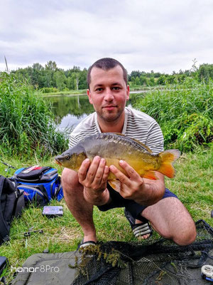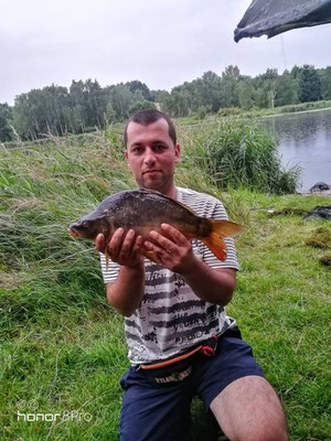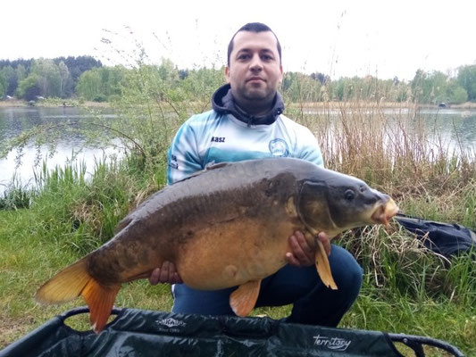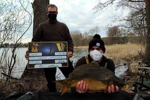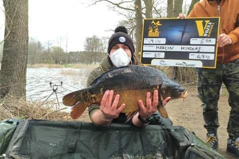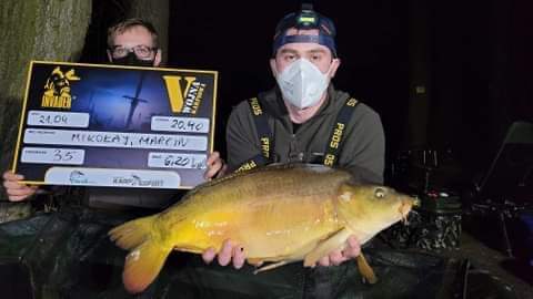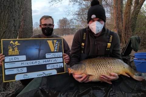 Piękny jesiotr o wadze 19 kg złowiony przez kolegę Mikołaja oraz kilka karpi z zawodów: