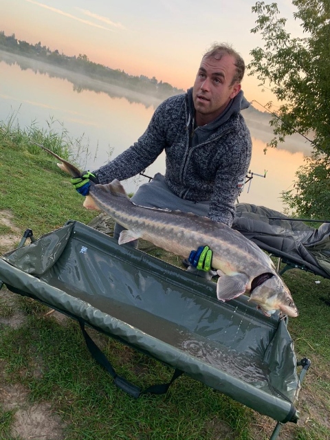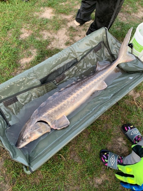 Jesiotr kolegi Grzegorza złowiony w Gierłatówku